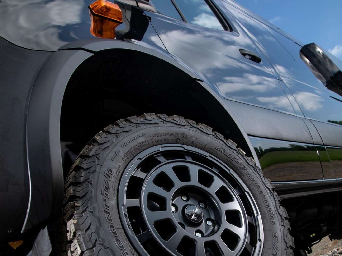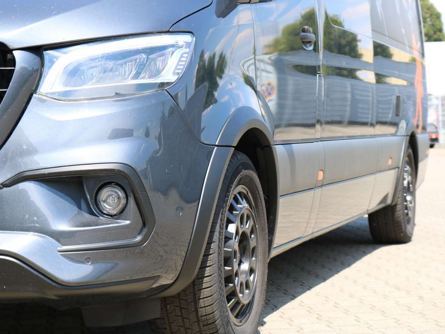 Die voraussichtliche Lieferzeit beträgt derzeit etwa 2 Wochen. Dieses Produkt ist ideal für Kastenwagen oder Kombi. Es bietet Schutz vor Steinschlägen und Ästen. Es handelt sich um einen 12-teiligen Radlaufsatzz für den Mercedes-Benz Sprinter (Baureihe 907), der sowohl für Kastenwagen als auch für Kombis geeignet ist. Diese präzise passenden PU-Anbauteile in Herstellerqualität sind zur Montage auf den Radläufen/Kotflügeln des Sprinters bestimmt. Es entstehen keine Lackierkosten, da die Radlaufaufsätze in der Oberflächenvariante "schwarz-Struktur" geliefert werden. Die Verbreiterung beträgt an der Vorderachse etwa +25 mm und an der Hinterachse etwa +15 mm. Die Montage erfolgt einfach durch Verkleben und dauert etwa 1,5 Stunden. Im Lieferumfang sind das Montagematerial und eine Montageanleitung enthalten. Ein Teilegutachten für den Sprinter (Baumuster 907) ist ebenfalls im Lieferumfang enthalten.