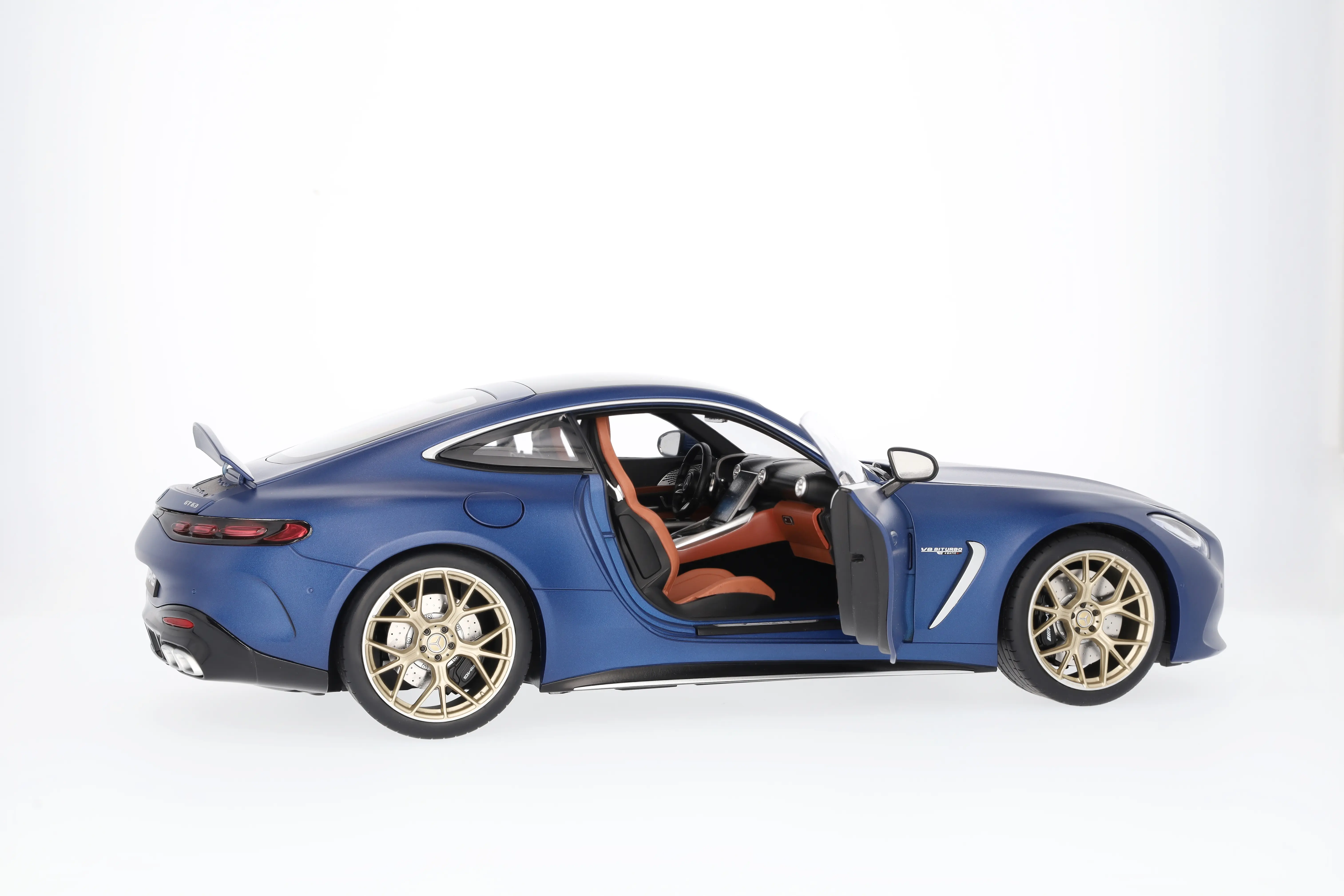 Das Mercedes-AMG GT 63 4MATIC+ Coupé C192 Miniaturmodell ist eine präzise Nachbildung des Originals mit höchster Detailgenauigkeit, basierend auf den originalen CAD-Daten. Sammler können sich auf eine authentische Farbgebung freuen, sowie auf eine originalgetreue Wiedergabe aller Interieurdetails im hochwertig gestalteten Innenraum. Das Präzisionsmodell, das aus über 207 handmontierten Einzelteilen besteht, beeindruckt mit seiner Ausstattung, einschließlich Panoramadach, AMG Performance Sitze, AMG Chrom-Paket Exterieur und 53,3 cm (21 Zoll) AMG Schmiederäder im Kreuzspeichen-Design in MANUFAKTUR Ausführung. Ein weiteres Highlight sind die vier beweglichen Teile - Türen, Heckklappe und Motorhaube. Das Coupé im Maßstab 1:12 wird in einer Mercedes-AMG Verpackung geliefert, inklusive Schraubendreher und Handschuh, damit das Modell ohne Fingerabdrücke auf Glas oder Karosserie aus der Verpackung genommen werden kann.