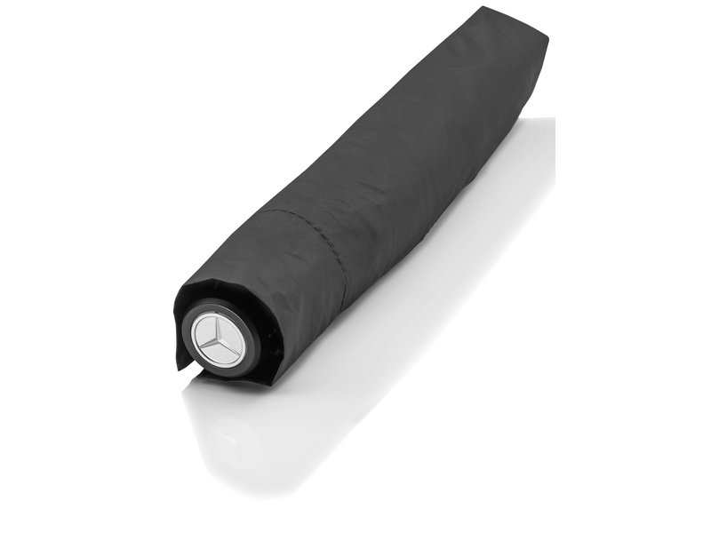 Der Mini-Taschenschirm in Anthrazit ist ein ultraleichtes und kompaktes Accessoire, das in jede Tasche passt und bei plötzlichen Regenschauern zuverlässigen Schutz bietet. Der Bezug des Schirmes besteht aus leichtem Polyester-Pongee und ist mit einem Mercedes Stern Druck versehen. Das hochwertige Windproof-System sorgt für maximale Flexibilität bei stärkeren Windböen. Der Stock des Schirmes ist aus schwarzem Aluminium gefertigt und am Griff aus Kunststoff befindet sich eine 3D-Sternplakette in Silber. Ein ideales Accessoire für alle, die einen zuverlässigen und stilvollen Schutz vor Nässe suchen.