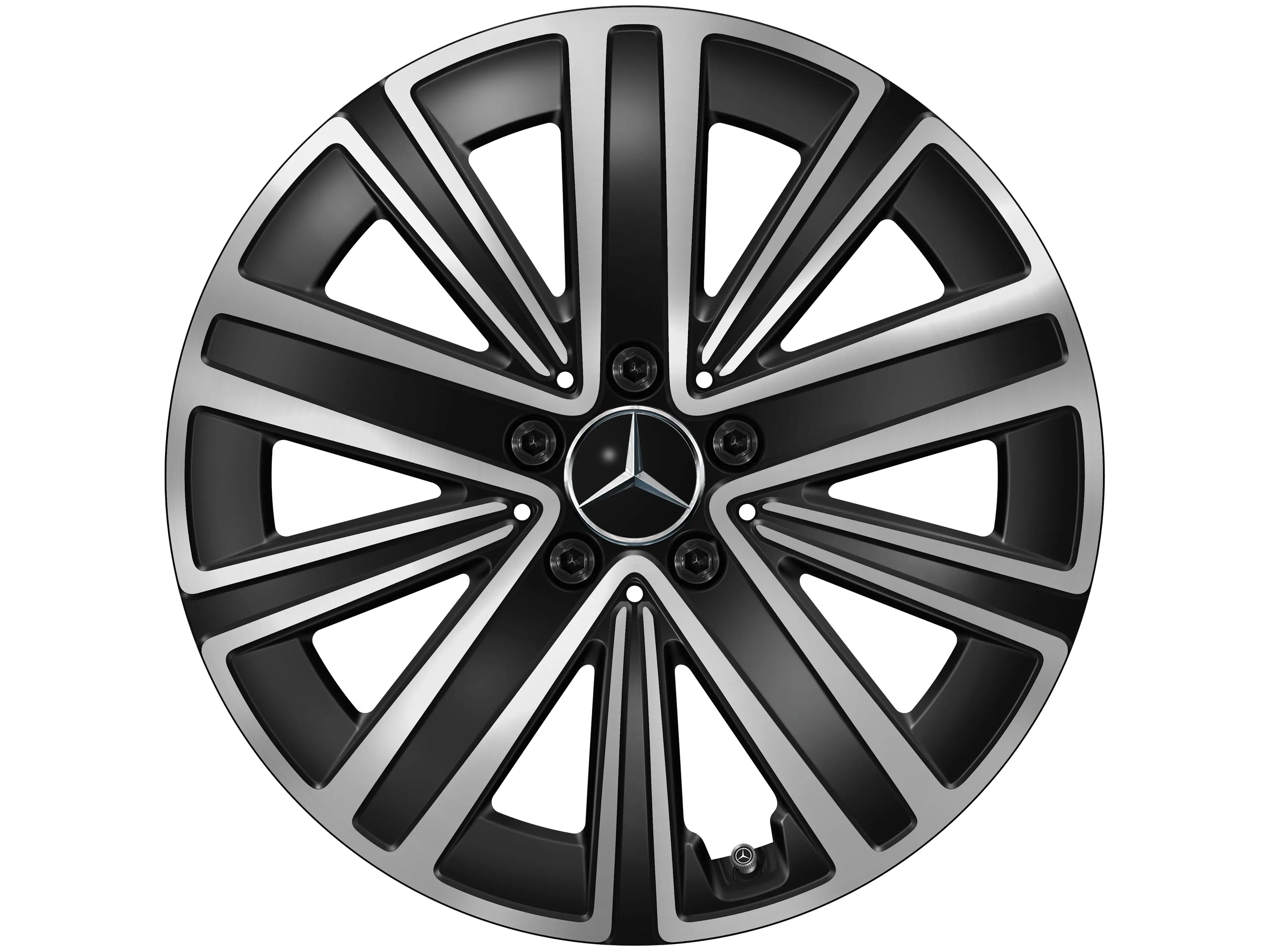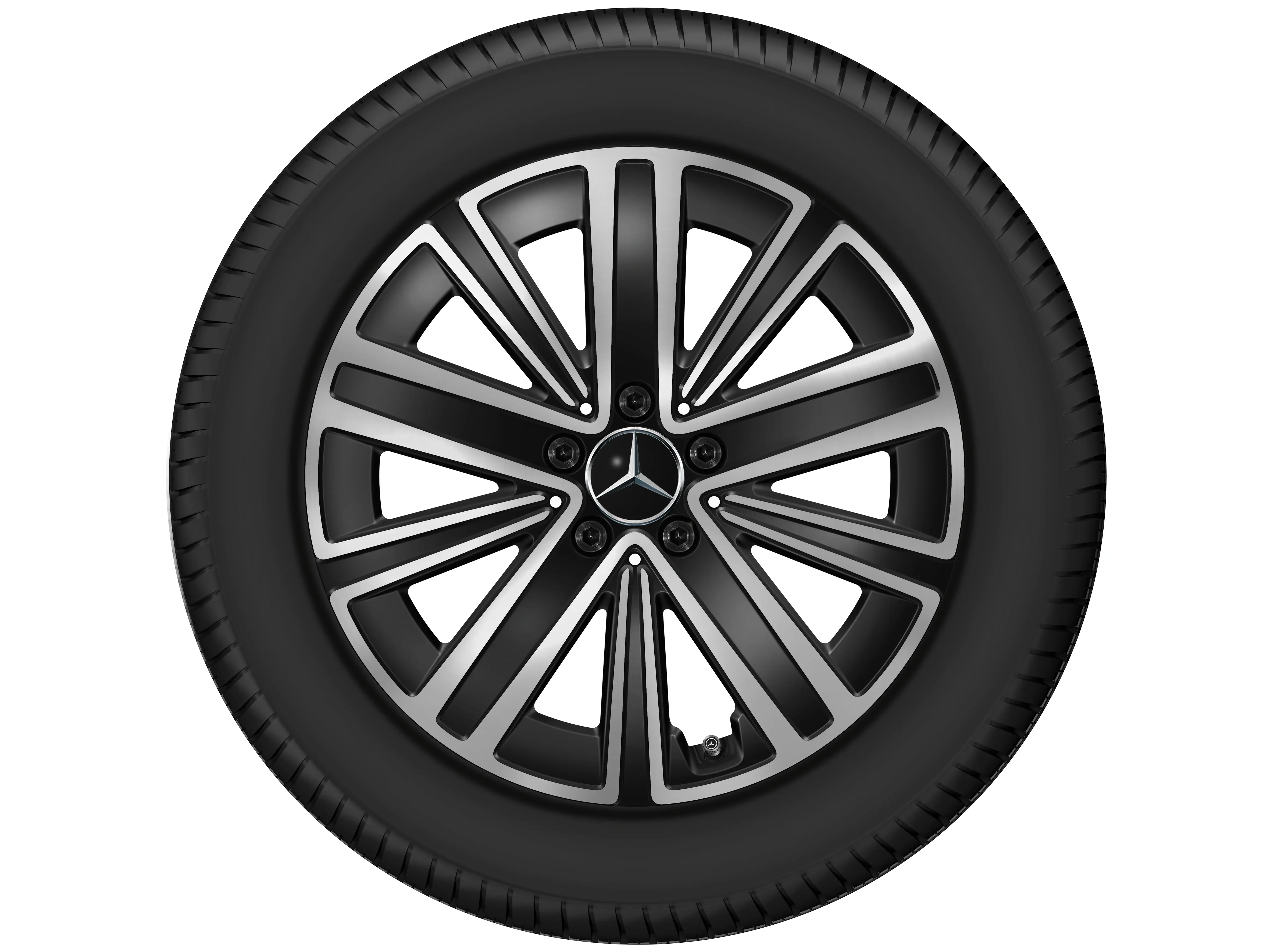 Mercedes-Benz Leichtmetallräder werden ohne Bereifung, Radnabenabdeckungen, Ventilzierkappen, Radschrauben und Radsicherungen ausgeliefert.