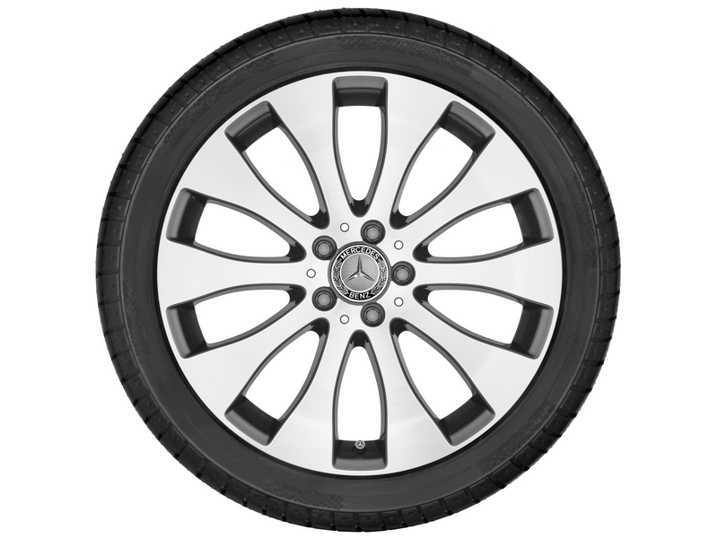 Mercedes-Benz lichtmetalen velgen zijn een unieke combinatie van design en veiligheid. Elk wiel is exact afgestemd op de auto en moet voldoen aan strenge richtlijnen van Mercedes-Benz die verder gaan dan de wettelijke vereisten. Deze richtlijnen omvatten duurtests die het echte wegverkeer simuleren en analyses van de materialen in ultramoderne röntgenfaciliteiten. Gepolijste velgen moeten ook tests doorstaan zoals zeer corrosieve zoutnevel of een klimaatwisselprogramma van 28 dagen. Pas nadat alle tests met succes zijn afgerond, worden de velgen geleverd als originele Mercedes-Benz lichtmetalen velgen. Elk wiel wordt geleverd zonder banden, naafdoppen, ventieldoppen, wielbouten en wielsloten.