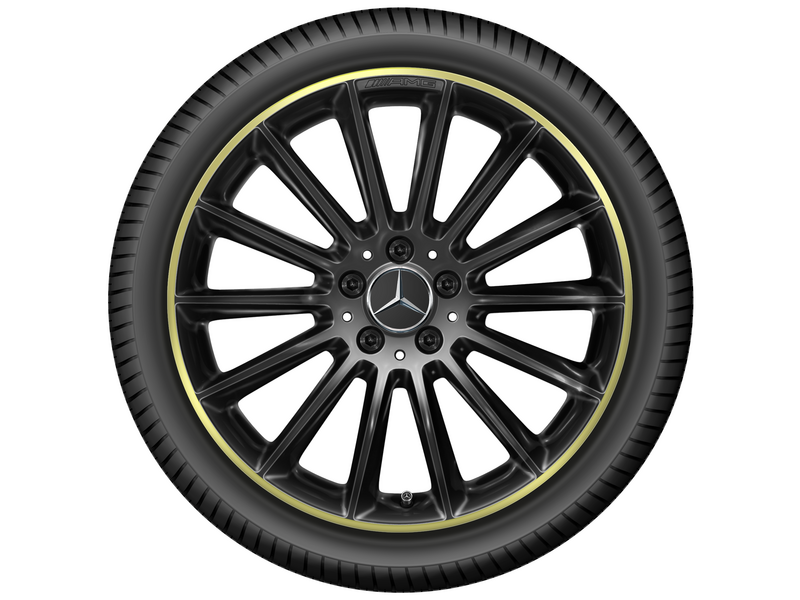 AMG-multispaaksvelg, 48,3 cm (19 inch), velgrand geel gelakt, CLA/B-Klasse/A-Klasse, 225/40 R19/, zwart, A17740116009Y70