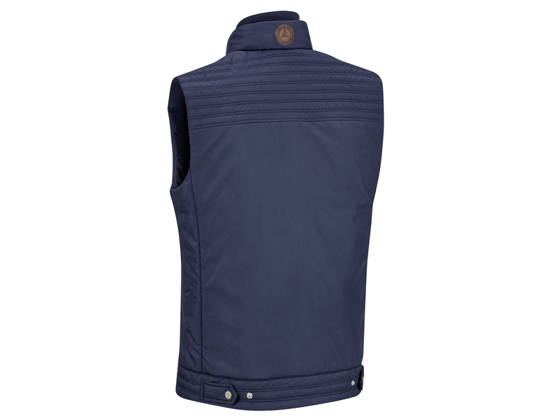 Het Classic Elegance herengilet is een echte allrounder die geschikt is als verwarmende extra laag op koude winterdagen en als lichte jas op koele zomeravonden. Het gilet is gemaakt van 100% polyester en is comfortabel om te dragen dankzij de waterafstotende en ademende eigenschappen. Twee zijzakken met ritssluiting en een binnenzak met ritssluiting bieden ruimte voor kleine benodigdheden. Dankzij de stang en drukknopen aan de achterkant kan de zoomwijdte van het comfortabele gilet in moderne pasvorm individueel worden aangepast. Een bruine imitatieleren badge met een historische ster aan de achterkant van de kraag, de gegraveerde drukknopen, de dubbele opstaande kraag, het naar voren gerichte schouder- en rugstuk met parallelle ton-sur-ton doorstiksels en de Weense naden aan de voor- en achterkant maken dit gilet tot een echte blikvanger. Het gilet is verkrijgbaar in de maten S-XXL en wordt geleverd in een aantrekkelijke blauwe kleur.