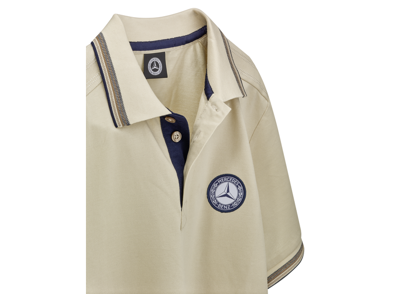 De moderne polo uit de Mercedes-Benz Classic Collection voor heren combineert comfort met een sportief, casual design. Het is de perfecte keuze voor elke dag. Het shirt is gemaakt van 100% gekamd organisch biopolymeer katoen en is verkrijgbaar in de maten S-XXL. Het heeft een moderne pasvorm en een polokraag en manchetten van 1x1 rib met een ingewikkeld ingebreid patroon. Andere details zijn een afgezet schouderstuk met doorstiksels, een nekband en zijsplitten. Een blauwe knoopsluiting met merkknopen met 4 gaatjes en een geweven en geborduurde badge met de historische ster op de borst ronden het ontwerp van het crèmekleurige shirt perfect af.