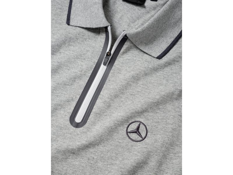 Geef je casual look een modieuze upgrade met deze herenpolo van single jersey stof. Het is comfortabel om te dragen en heeft een gedraaide ritssluiting, een zwarte Autolock ritstrekker met een 3D ster en een ritssluiting met modieuze verlijming. Het shirt is afgewerkt met een gedessineerde hals- en gulpband, kraag en manchetten van 1x1 rib met contrasterende strepen, een geborduurde Mercedes-ster op de borst en een verlengd rugpand, dat dit poloshirt in een moderne pasvorm perfect aanvult. Gemaakt van 100% gekamd katoen en verkrijgbaar in de maten S-XXL.