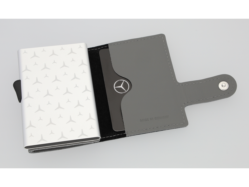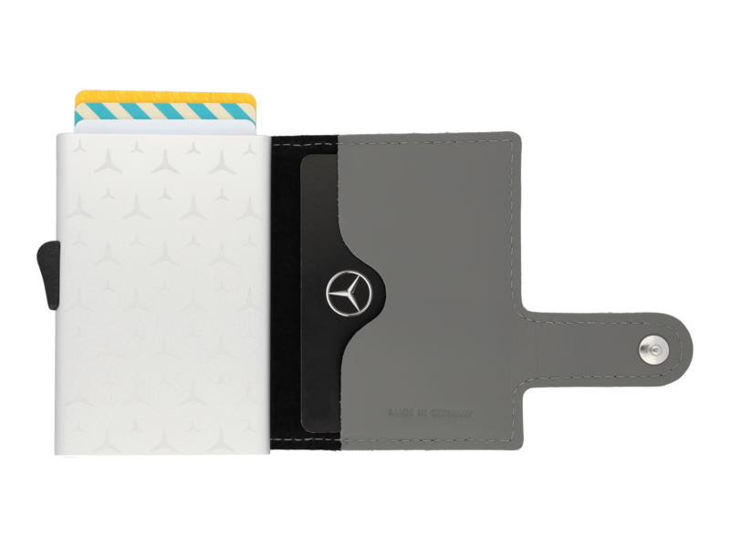 Ontdek de AMG creditcardhouder van zwart rundleer, die niet alleen een veilige maar ook een stijlvolle opbergmogelijkheid biedt voor bank- en creditcard. Met de glanzende opdruk van het zwarte AMG-logo en een praktische indeling aan de binnenkant heeft het etui vier kaartsleuven en een insteekvak voor creditcards, bankpassen, ID-kaarten etc. Het creditcardetui is bovendien voorzien van RFID-bescherming, waardoor onbevoegd scannen en uitlezen van kaartgegevens wordt voorkomen. Dit handgemaakte product is vervaardigd in Duitsland en maakt indruk met zijn hoge kwaliteit en elegante ontwerp. De AMG creditcardhouder, verkrijgbaar in zwart en gemaakt van koeienhuid/nylon, is de perfecte keuze voor iedereen die zijn pasjes veilig en stijlvol wil bewaren.
