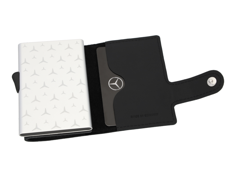 Ontdek de AMG creditcardhouder van zwart rundleer, die niet alleen een veilige maar ook een stijlvolle opbergmogelijkheid biedt voor bank- en creditcard. Met de glanzende opdruk van het zwarte AMG-logo en een praktische indeling aan de binnenkant heeft het etui vier kaartsleuven en een insteekvak voor creditcards, bankpassen, ID-kaarten etc. Het creditcardetui is bovendien voorzien van RFID-bescherming, waardoor onbevoegd scannen en uitlezen van kaartgegevens wordt voorkomen. Dit handgemaakte product is vervaardigd in Duitsland en maakt indruk met zijn hoge kwaliteit en elegante ontwerp. De AMG creditcardhouder, verkrijgbaar in zwart en gemaakt van koeienhuid/nylon, is de perfecte keuze voor iedereen die zijn pasjes veilig en stijlvol wil bewaren.