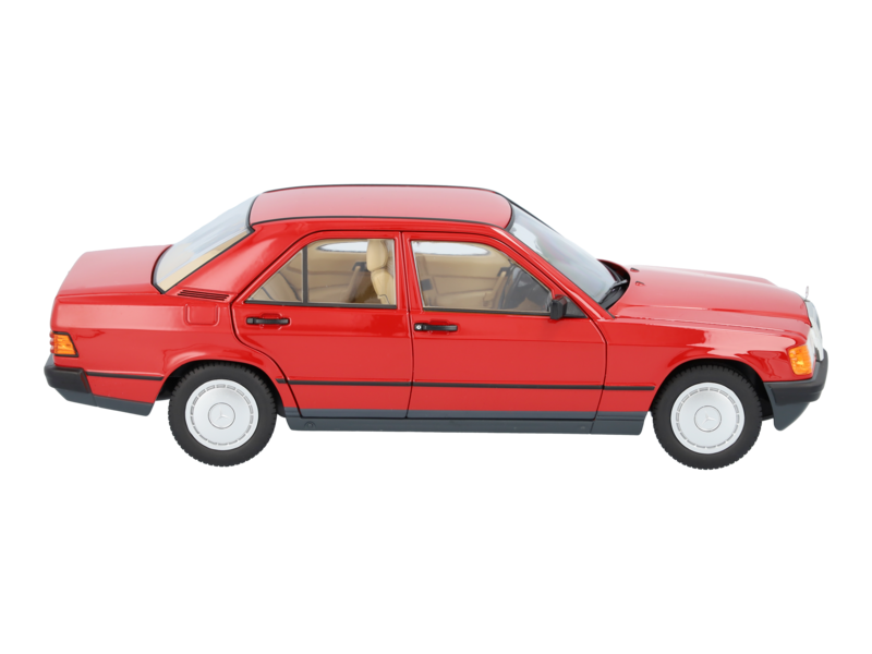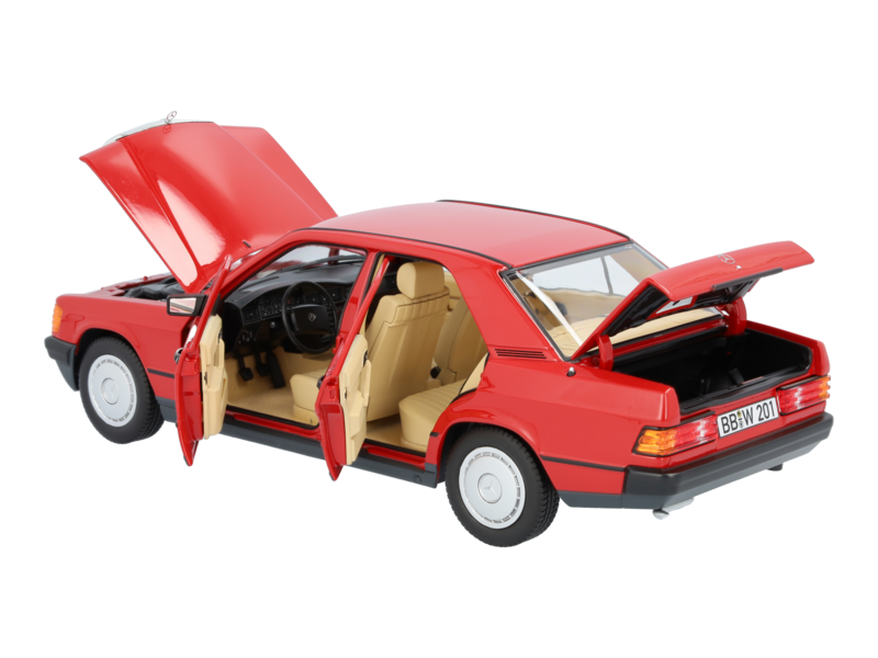 De W201, ook wel bekend als de 190 saloon, is een van de meest succesvolle modellen in de geschiedenis van Mercedes-Benz. Hij maakt indruk met zijn compacte afmetingen, lage gewicht en toegenomen zuinigheid, zonder de rijeigenschappen, veiligheid en betrouwbaarheid uit het oog te verliezen. Als precisiemodel van het topmodel 190 E is de W201 een echte must-have in elke modelautocollectie. Het miniatuurmodel is gemodelleerd naar het origineel in het hoogste detailniveau, is geschilderd in een authentieke kleur en maakt indruk met een gedetailleerde weergave van het interieur. Met de openslaande deuren, motorkap en achterklep biedt het een blik in de auto. De Mercedes-Benz Classic verpakking bevat een schroevendraaier om de auto gemakkelijk te kunnen verwijderen en een handschoen om vingerafdrukken op het glas en de carrosserie te voorkomen. Dit schaal 1:18 miniatuurmodel is gemaakt van gegoten zink met kunststof onderdelen en wordt met de hand geassembleerd geleverd uit meer dan 100 afzonderlijke onderdelen.
