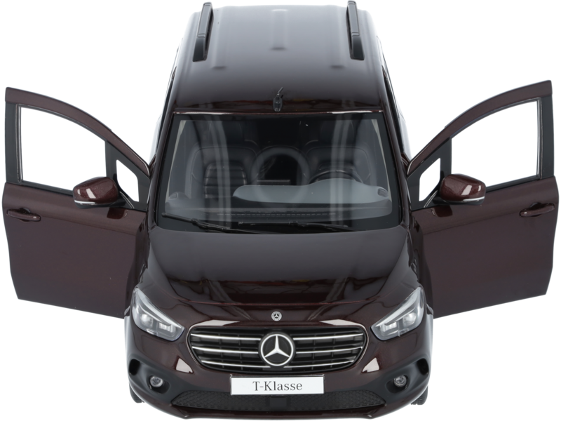 Het precisiemodel van de T-Klasse Progressive van Mercedes-Benz is een uniek miniatuurmodel op een internationale verzamelaarsschaal van 1:18. Het model is vervaardigd uit meer dan 90 afzonderlijke onderdelen van spuitgegoten zink met kunststof onderdelen en met de hand geassembleerd. Het model is tot in het kleinste detail gerealiseerd volgens de originele CAD-gegevens. De modelauto is uitgevoerd in een authentieke SA-lak en uitrustingsvariant. Binnenin de auto is er een hoogwaardig gedecoreerd interieur en een gevlokte interieur- en kofferbakbodem. Het model is ook uitgerust met LED high-performance koplampen, LED mistlampen en een verchroomd radiatorrooster. Het model is ca. 24,9 cm lang en wordt geleverd in een Mercedes-Benz verpakking, inclusief schroevendraaier. Hiermee kunnen alle schroeven in de polystyreen verpakking worden losgedraaid om het precisiemodel te verwijderen. Niet geschikt voor kinderen jonger dan 14 jaar. Maakt deel uit van de Mercedes-Benz VAN Collectie.