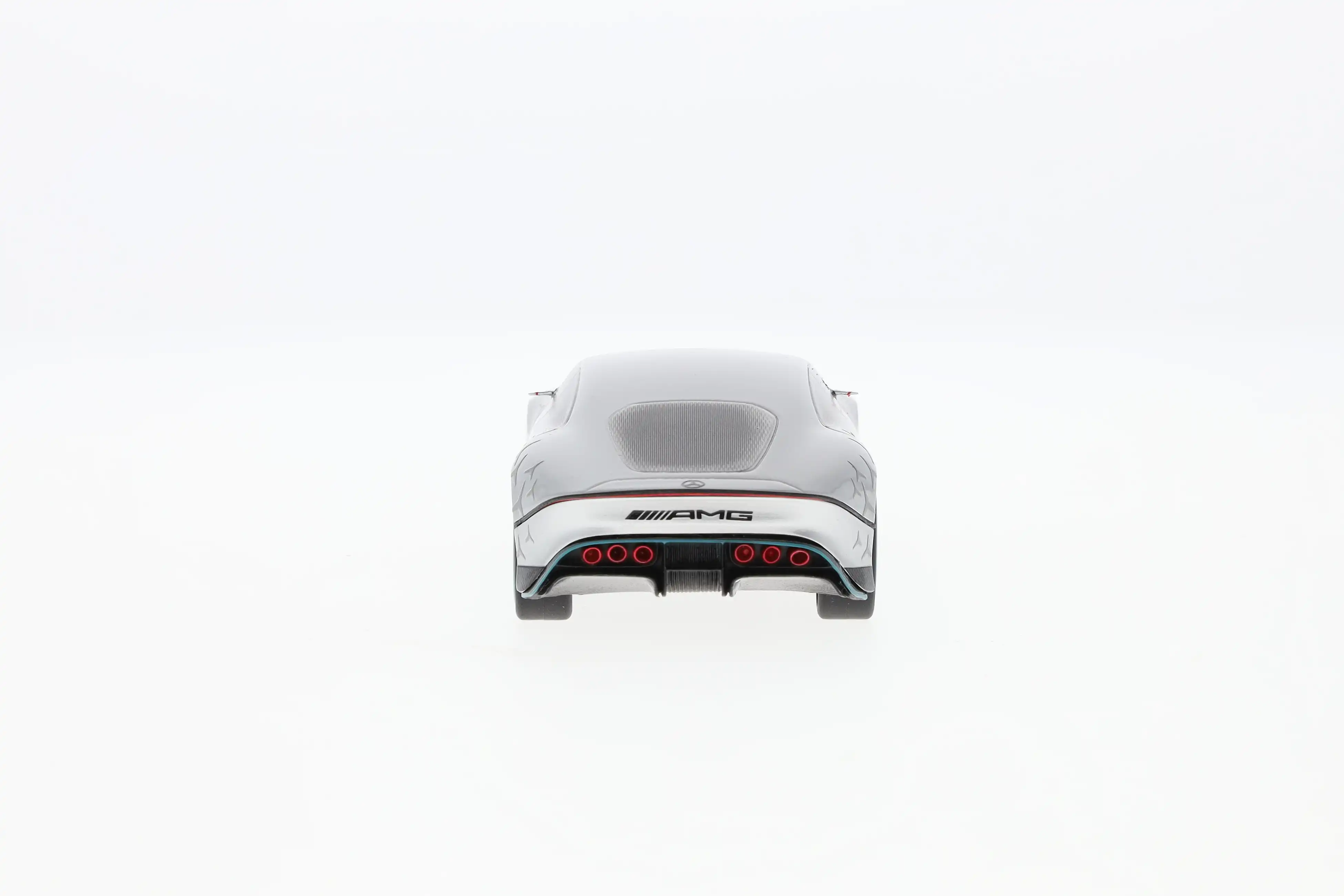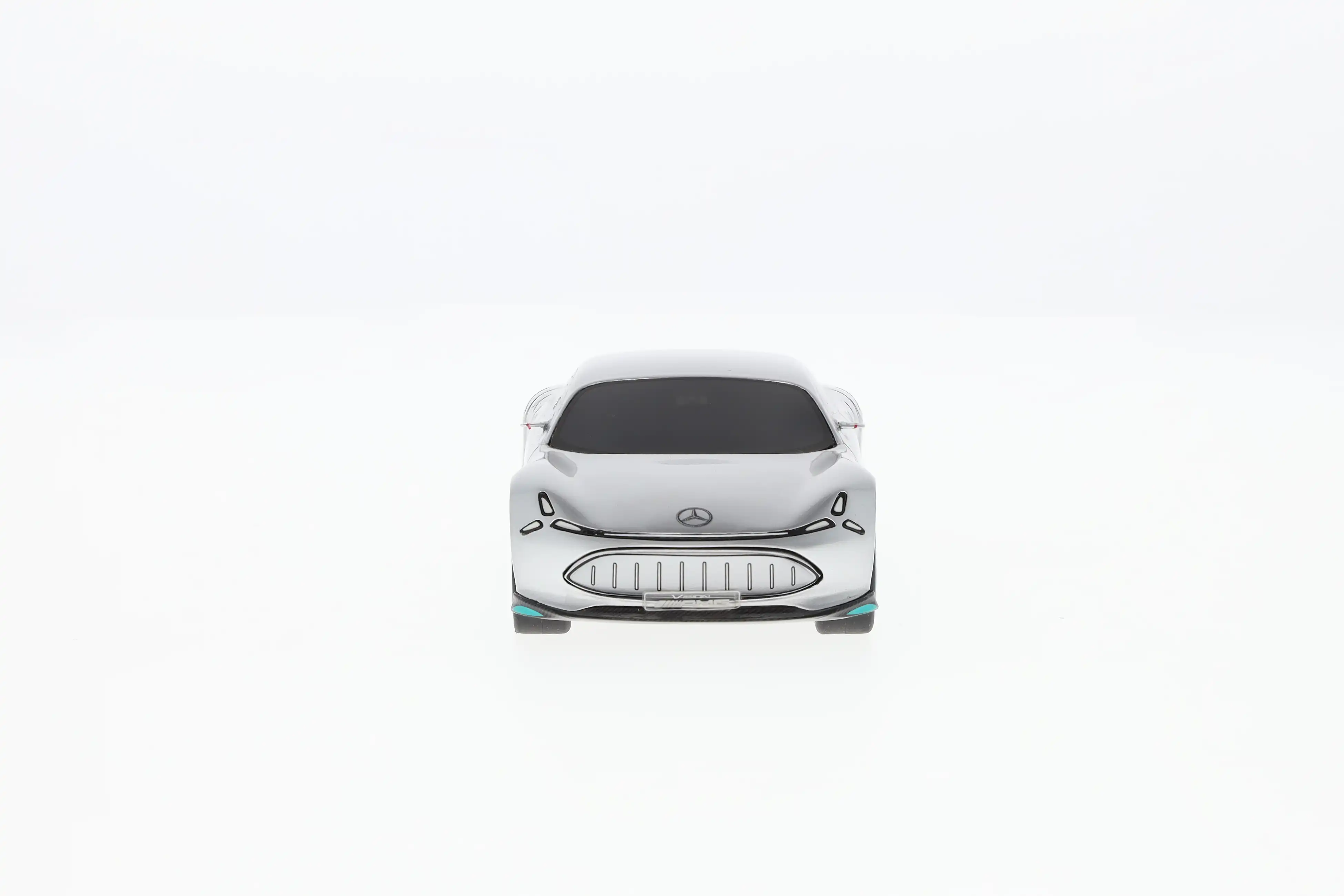 De Vision AMG showcar maakt indruk met zijn spectaculaire proporties, die worden gekenmerkt door een verlengde wielbasis en nadrukkelijk korte overhangen. Zijn sterk geprononceerde schouders, grote wielen, een opvallende spoilerrand aan de achterzijde en de stervormige lichtsignatuur van de grote koplampen maken perfectie tot werkelijkheid. De concept car wordt gekenmerkt door zijn vloeiende, volle oppervlakken die doen denken aan een monolithische sculptuur, omdat de naden tot een minimum zijn gereduceerd. Het gesloten AMG-radiatorrooster met verlichte stijlen en de ongewone lichtsignatuur met ster benadrukken het buitengewoon sportieve, hightech naadloze design van de showauto. Ook als miniatuurmodel brengt de Vision AMG show car sportieve elegantie in uw collectie. Hij is met het grootste oog voor detail vervaardigd op basis van de originele CAD-gegevens en in een authentieke kleur gespoten, waardoor hij een trendsettend hoogtepunt wordt. Het model, dat met de hand is samengesteld uit meer dan 25 afzonderlijke onderdelen, is gemonteerd op een sokkel en wordt geleverd in een Mercedes-AMG-verpakking.