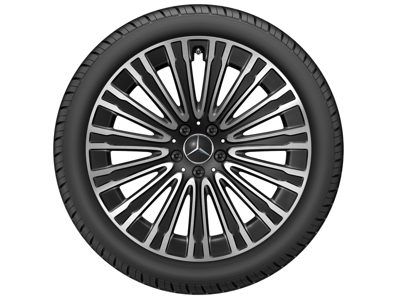 Mercedes-Benz lichtmetalen velgen zijn niet alleen een optische blikvanger, maar voldoen ook aan de hoogste veiligheidsnormen. Elk velgdesign wordt qua belasting en afmetingen exact op de auto afgestemd volgens de strenge richtlijnen van Mercedes-Benz en moet een groot aantal duurzaamheidstests doorstaan die allemaal de wettelijke vereisten overtreffen. Deze omvatten speciale testprocedures die de echte uitdagingen in het wegverkeer nabootsen, evenals analyses van de materialen in ultramoderne röntgenfaciliteiten. De blankgedraaide velgen worden ook onderworpen aan zeer corrosieve zoutsproeitests en een klimaatwisselprogramma van 28 dagen voordat ze als originele Mercedes-Benz lichtmetalen velgen in het assortiment worden opgenomen. Deze worden geleverd zonder banden, wielnaafdoppen, ventieldoppen, wielbouten en wielsloten.