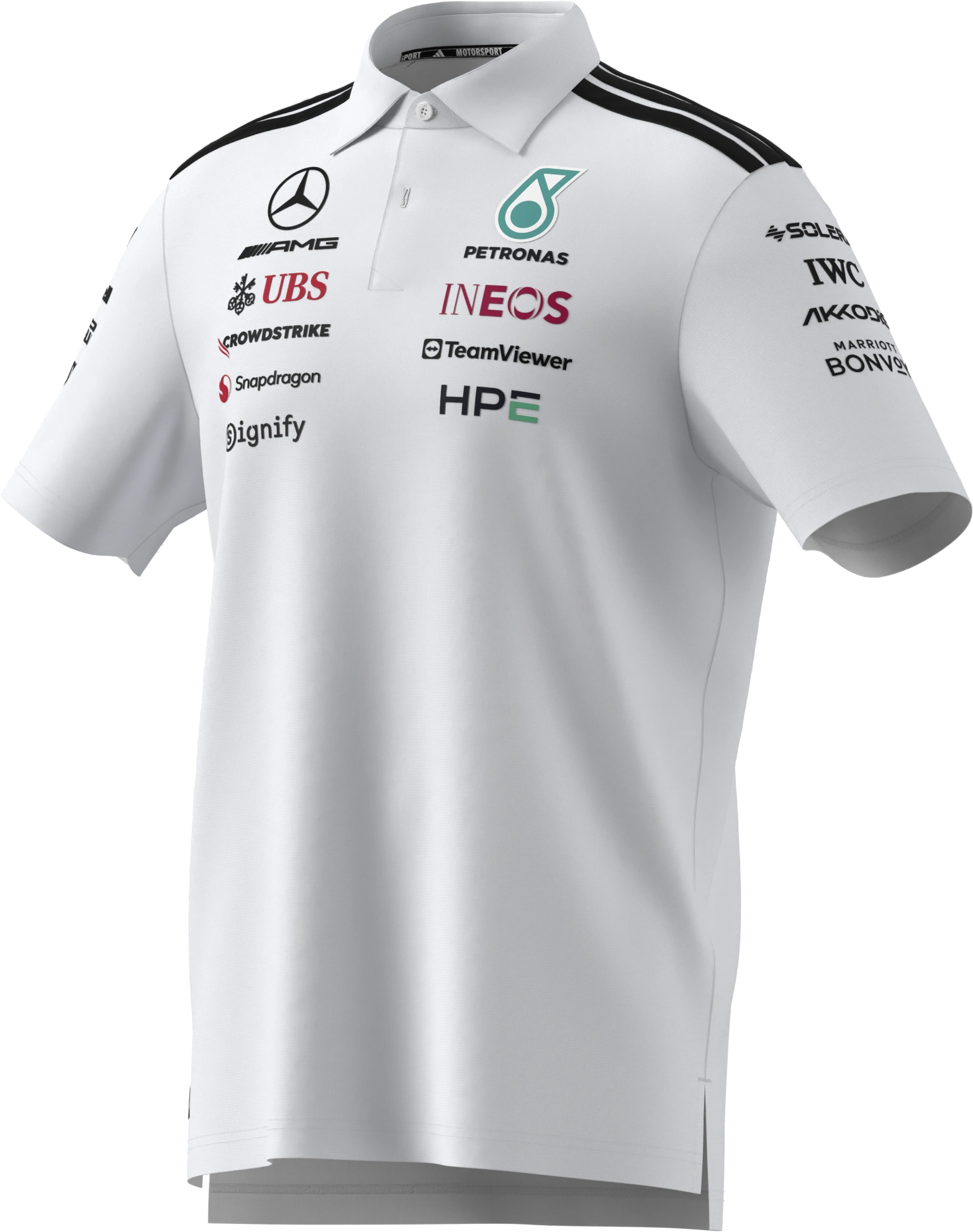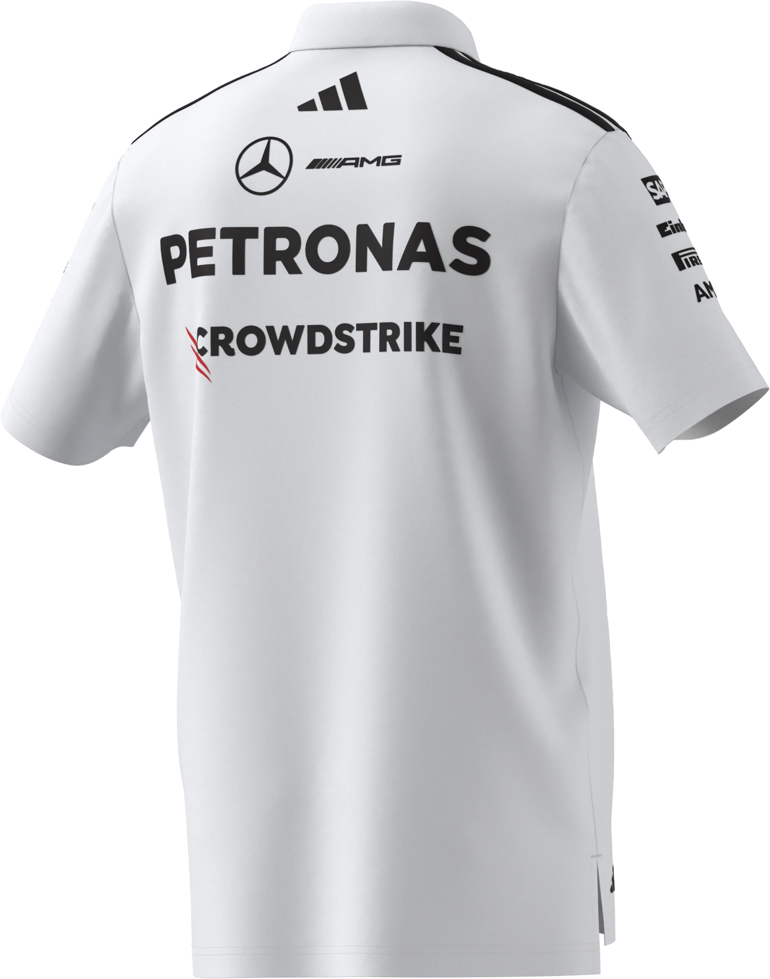 Stil, Performance und Luxus - vereint in einem Style. Das offizielle Mercedes-AMG PETRONAS Formula One Team Poloshirt der Saison 2026 kombiniert einen klaren, eleganten Look mit Performance-Stoffen, die gut aussehen und sich gut anfühlen - ob im Alltag oder bei Höchstleistung. Ein Streifendetail an der Schulter setzt einen sportlichen Akzent, während die Team- und Partnerlogos auf der Vorder- und Rückseite sowie auf den Ärmeln das Design des Shirts authentisch abrunden.