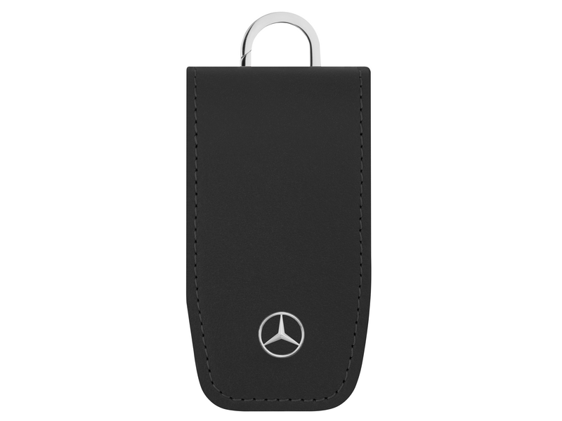De sleuteletui van hoogwaardig rundleer en roestvrijstalen elementen is een echte blikvanger. Hij is perfect ontworpen voor sleutels van de Generatie 8 en biedt maximale veiligheid dankzij de magnetische sluiting. De karabijnsluiting en de drie mini-splitringen maken het verwisselen en verwijderen van sleutels kinderspel. Het harmonieuze design wordt bovendien benadrukt door een 3D-ster en een Mercedes-Benz lasergravure op de platte splitring. Afmetingen: ca. 5 x 3 x 8,5 cm.