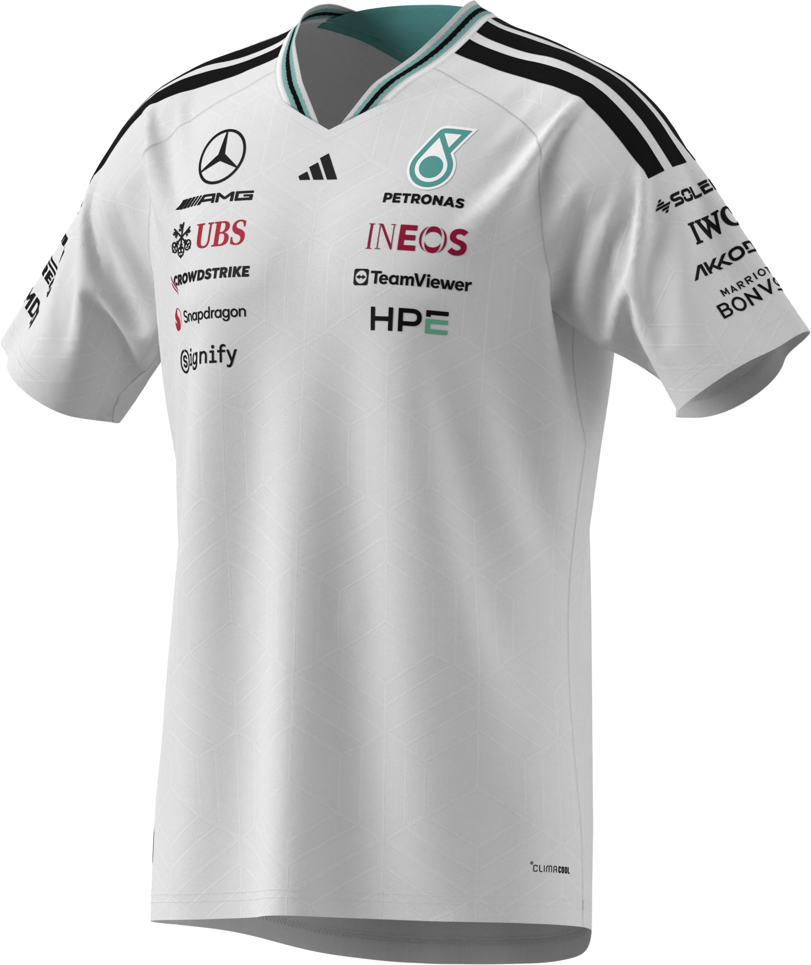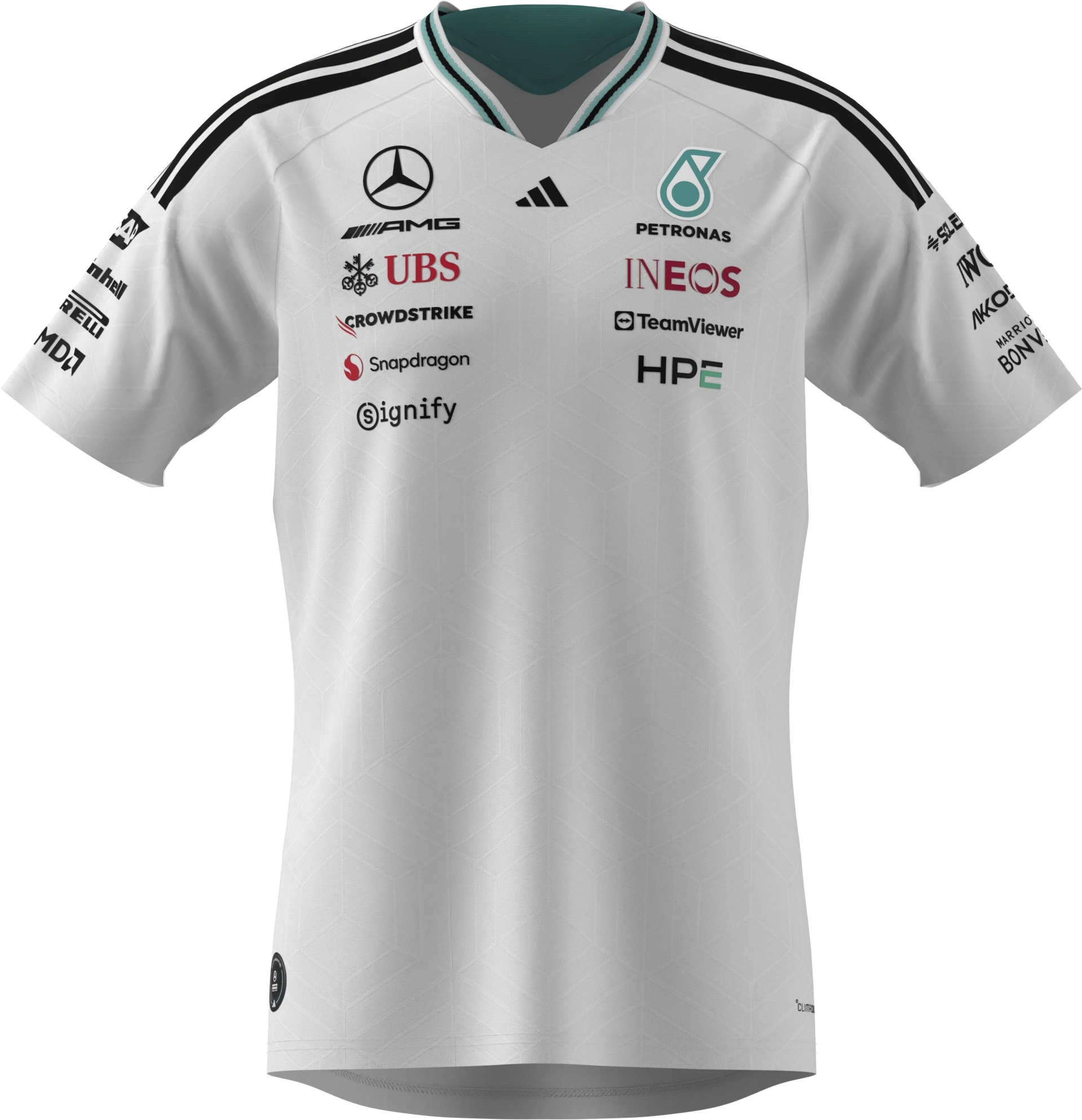 Einfach authentisch und exakt wie von den Fahrern getragen: Das Mercedes-AMG PETRONAS Formula One 2026 Fahrer Authentic T-Shirt vereint kompromisslose Performance mit klarem, stilvollem Design. Streifendetails an Halsausschnitt und Schulter setzen dynamische Akzente und schenken dem Shirt einen modernen Look. Komplettiert wird das Design von Team- und Partnerlogos auf der Vorder- und Rückseite sowie auf den Ärmeln.