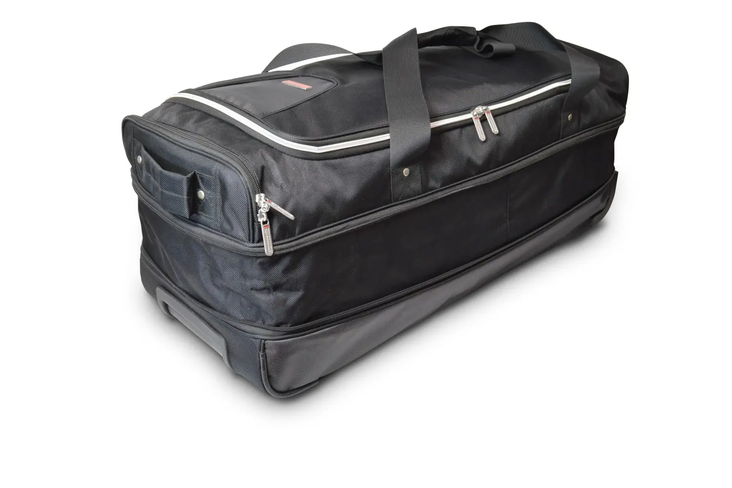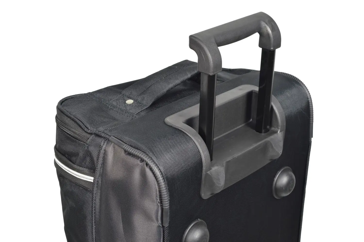 Bequemes und schnelles Packen:Packen war noch nie so bequem und schnell, weil Sie wissen: wenn es in den Car-Bags.com™ Reisetaschenset hineinpasst, dann passt es automatisch in den Kofferraum. Die meisten Car-Bags Sets bestehen aus einer unteren Schicht von praktischen Rollentaschen mit Rädern und Teleskopgriff und einer oberen Schicht von dazu passenden Handgepäcktaschen. Ein Car-Bags Reisetaschenset ist exakt auf jedes Automodell zugeschnitten. Das Set wird also nicht zusammengestellt aus einer festen Palette von Standardtaschen, sondern die Größen der Trolley-Taschen und Reisetaschen sind genau auf den Kofferraum abgestimmt. Dadurch wird der Kofferraum optimal in Höhe, Breite und Länge genutzt. Car-Bags.com Reisetaschen sind meistens 30-35 cm breit, sodass gefaltete Kleidung gut hineinpasst. Unsere Taschen sind nicht zu groß, weil große Taschen schwer und unhandlich sind. Darüber hinaus neigt sich den Inhalt von großen Taschen einfacher zum Verheddern. Produktmerkmale: Jedes Set ist genau auf das Automodell zugeschnitten. Verschiedene Protektoren gewährleisten dauerhaften Schutz am Bodenteil und an empfindlichen Rändern und Ecken jeder Tasche. Alle Taschen sind mit einem praktischen Reißverschlussfach ausgestattet, das von außen zugänglich ist. Alle Taschen haben ein schwarzes Innenfutter mit einer zusätzlichen Schicht aus robustem Schaumstoff, für maximalen Schutz des Inhalts. Alle Reißverschlüsse sind mit Metallösen versehen, sodass sie sich mit kleinen Schlössern abschließen lassen. Jede Rollentasche ist mit einem Teleskopstangengriff und doppelt gelagerte Gummirädern ausgestattet. Jede Rollentasche hat ein zusätzliches Reißverschlussfach an der Innenseite. Jede Rollentasche hat an der Innenseite 2 oder 3 Zurrgurte, um den Inhalt zu fixieren.Jede Handgepäcktasche hat einen verstellbaren Schulterriemen. 3 Jahre Garantie auf Herstellungsfehler. Sicheres Reisen:Mit einem Car-Bags Set nutzen Sie Ihr Kofferraum optimal und brauchen Sie weniger gefährliches, loses Gepäck im Fahrgastraum unter zu bringen. Kompakt zu verstauen:Ein Car-Bags Set lässt sich vollständig zusammenfalten – im Gegenteil zu Hartschalenkoffern – und ist daher einfach im Haus zu verstauen. Doch auch am Reiseziel ist es äußerst praktisch, wenn die leeren Taschen so wenig Platz wie möglich einnehmen. Top Qualität: Alle Car-Bags Reisetaschen sind aus hochwertigem Polyestergewebe gefertigt. Stark, langlebig, wasserabweisend und leicht zu reinigen. Das Innenfutter mit einer Zwischenschicht aus robuster Schaumstofffolie bietet maximalen Schutz des Inhalts. Jeder Trolley ist mit zweiseitig gelagerten Rädern mit Gummireifen ausgestattet, um ein ruhiges und sanftes Rollen während der gesamten Lebensdauer der Tasche zu gewährleisten. Car-Bags garantiert 3 Jahre Garantie auf Produktionsfehler.