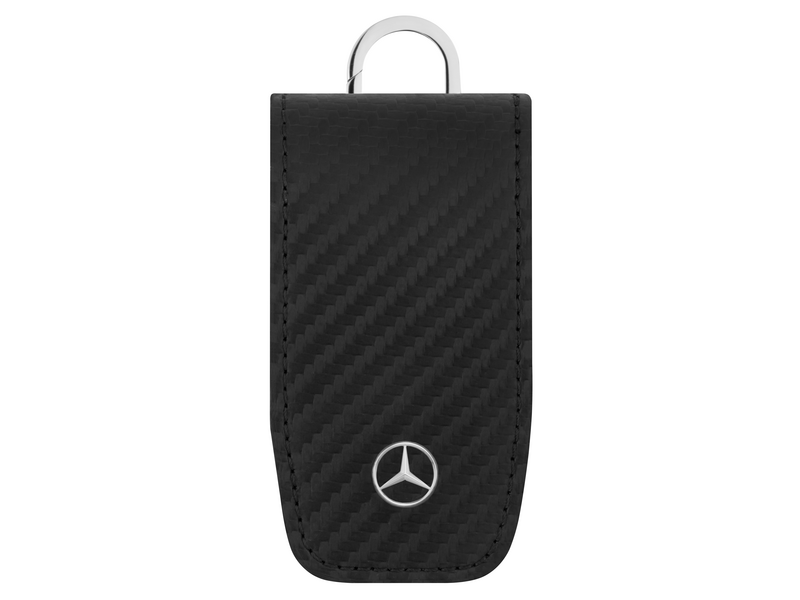 Das Schlüsseletui aus Rindleder und Edelstahl-Elementen ist das perfekte Accessoire für Schlüssel der Generation 8. Es ist mit einem Karabinerverschluss, drei Minispaltringen und einem Magnetverschluss ausgestattet, um die Schlüssel sicher zu verstauen und ein einfaches Wechseln und Entnehmen zu ermöglichen. Dazu kommt ein ansprechendes Design, das durch die aufgesetzte 3D-Sternniete und einer Mercedes-Benz Lasergravur auf dem Flachspaltring unterstrichen wird. Maße: ca. 5 x 3 x 8,5 cm.