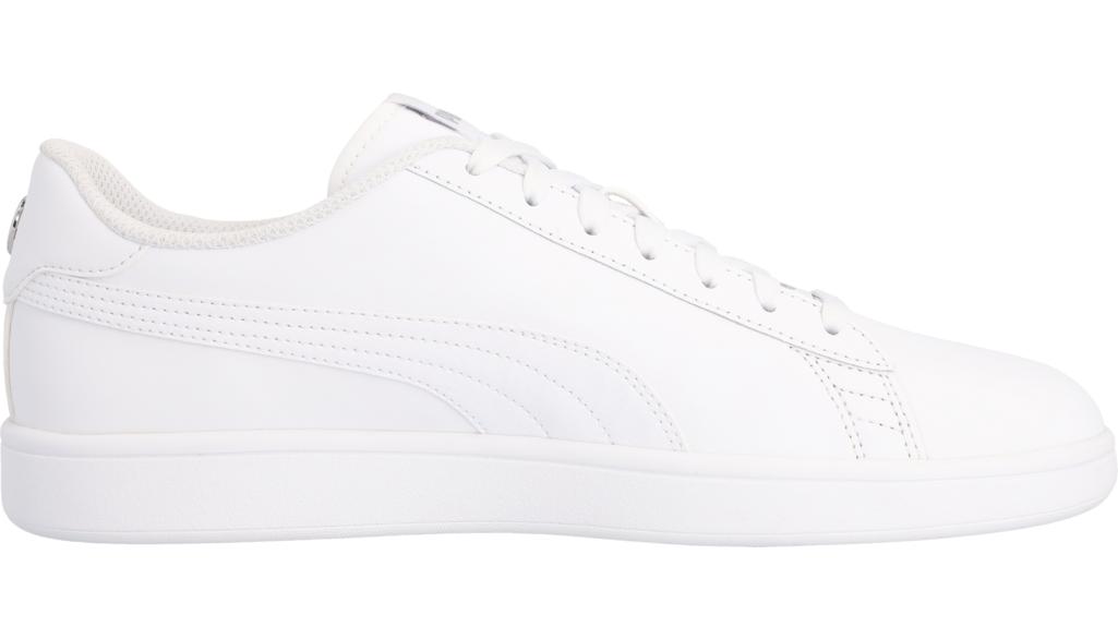 Mit den Smash v2L Sneakern sind Sie sowohl in Ihrer Freizeit als auch beim Sport komfortabel unterwegs. Sie bieten höchsten Tragekomfort, der nicht nur durch das weiche Rindsleder-Obermaterial und die Gummilaufsohle gewährleistet wird, sondern auch durch die entnehmbare SoftFoam Einlegesohle, die eine optimale Druckentlastung beim Laufen und Gehen verspricht. Auch optisch punkten die Schuhe: Das weiße Design wird durch eine Sternniete an der Ferse und ein PUMA Logo abgerundet.