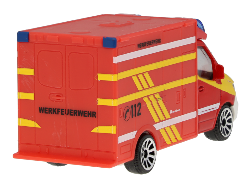 Das Spielzeugauto aus Metall und Kunststoff im authentischen deutschen Werkfeuerwehr Design bringt echten Spielspaß ins Kinderzimmer. Es ist im echten Farbton lackiert und als Werkfeuerwehr Sprinter bedruckt und beklebt. Mit einer Länge von ca. 8,3 cm ist es für Kinder ab 3 Jahren geeignet und wird in einer Blisterverpackung geliefert. Es ist ein Teil der Mercedes-Benz VAN Collection und im Maßstab 1:64 gefertigt. Mit dem Spielzeugauto können Kinder Brände löschen und Leben retten!