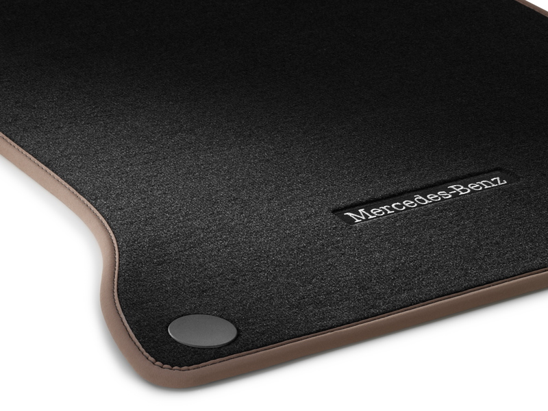 Ein stilvoller und qualitativ hochwertiger Tufting-Veloursteppich mit eingesticktem Mercedes-Benz Logo.Die farblich abgestimmte Einfassung der Fußmatten orientiert sich an den Sitznähten. Der Teppich ist stets in Schwarz gehalten und passt perfekt zur Bodenauskleidung.