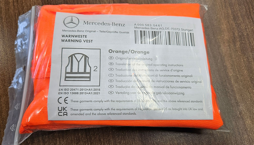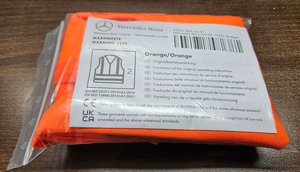 Eigenschaften "Warnweste, (u.a. S-Klasse/ smart/ EQB), orange, A0005830461"